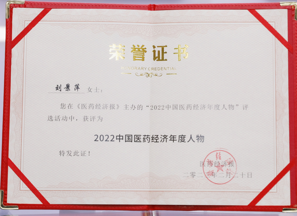 热博RB88药业集团董事长刘景萍当选“2022中国医药经济年度人物”